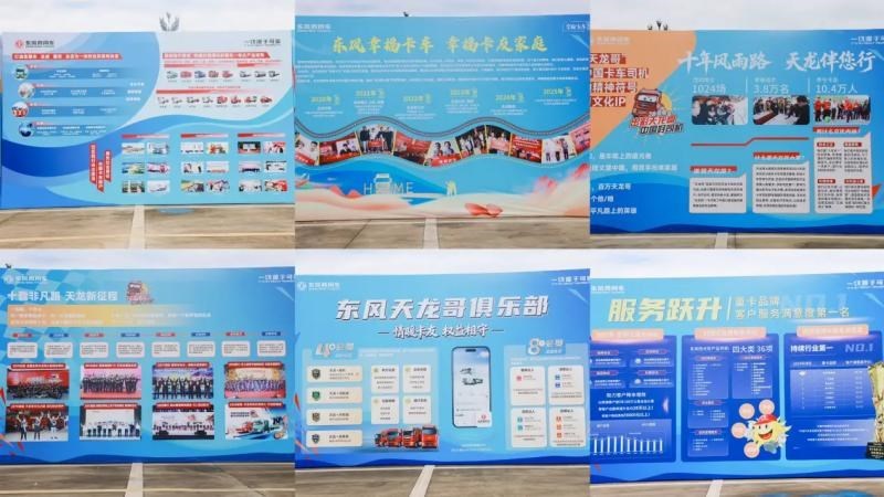 此次升级,不仅是IP焕新,更是一次文化的深度沉淀与服务的全面升维。现场精心构筑的东风文化空间,以墙为卷、以文为脉,系统传递着东风商用车的底蕴与未来。迎面而来的「东风文化墙」,镌刻东风商用车的根脉与灵魂,记录从制造到创造价值的每一步;紧随其后的「幸福卡车」承载愿景与温度,让钢铁机器成为幸福空间;旁边的「天龙哥历程」闪耀着荣耀与情谊,见证卡友从高手到意见领袖的蜕变;紧接着「天龙哥权益」彰显东风商用车对用户的诚意与行动,为俱乐部成员定制专属支撑;最后,「后市场服务」延伸品牌的责任与关怀,构建全周期一站式保障。